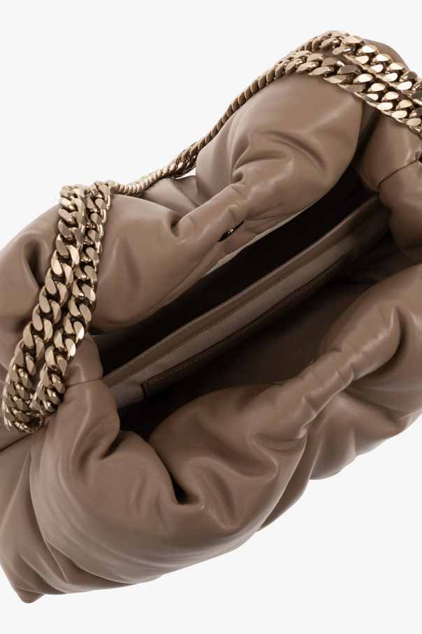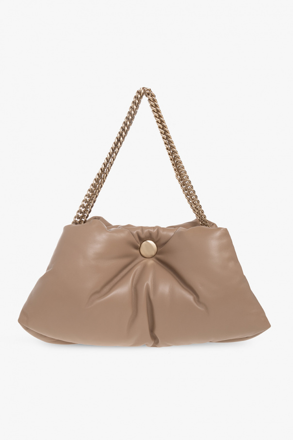 Greyish beige ‘Tobo’ shoulder bag from Proenza Schouler. Made of lamb leather, this model features a white gold-tone magnetic snap, shoulder chain and one internal compartment with two partitions.