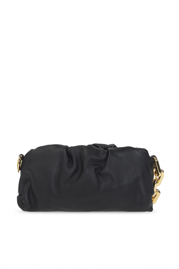 Black ‘Teen Chain’ shoulder bag from Bottega Veneta. Made of calf leather, this model features a magnetic closure, shoulder chain, one internal compartment and gold-tone metal hardware.