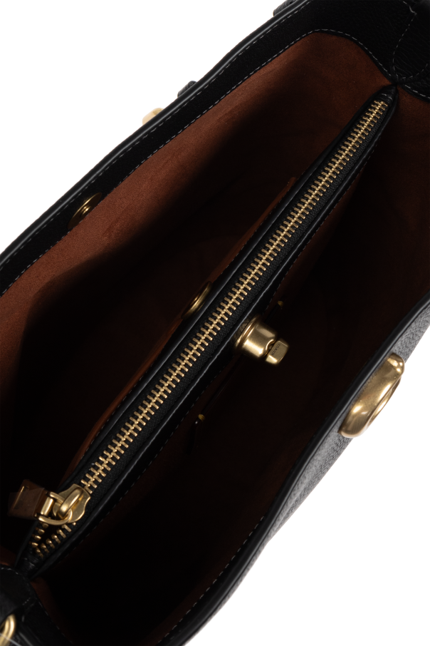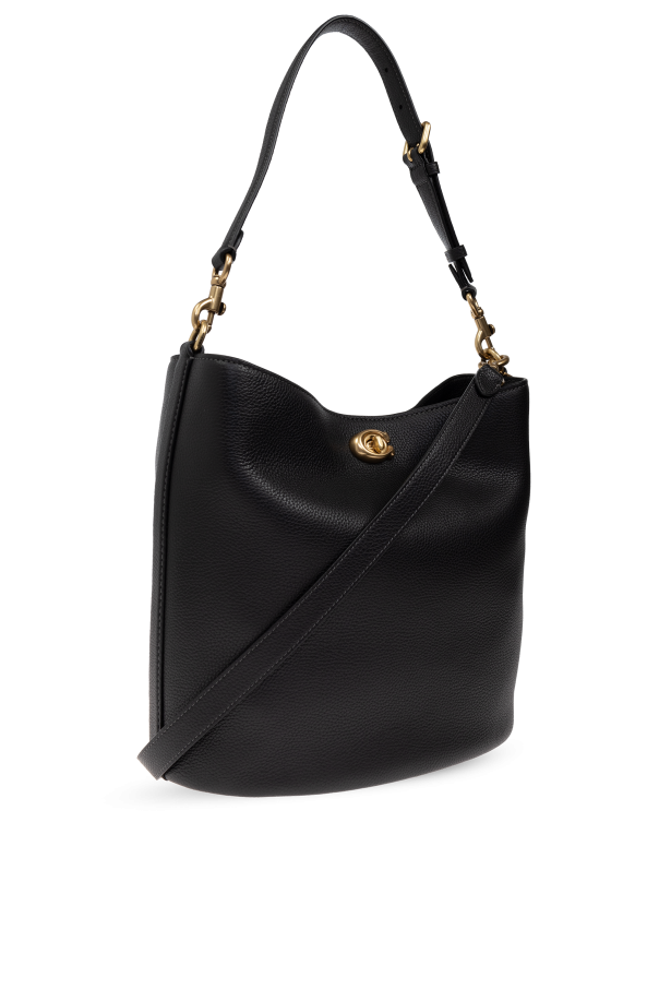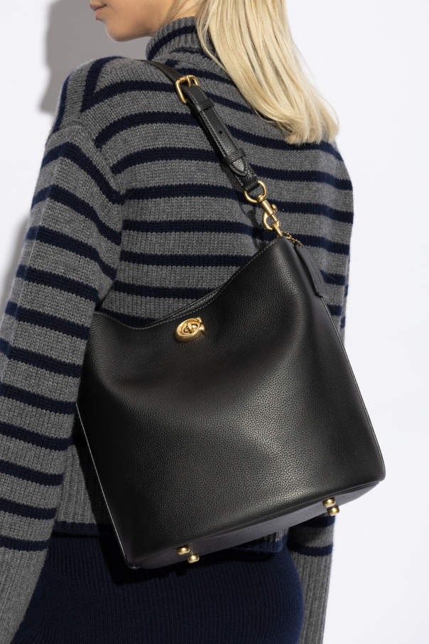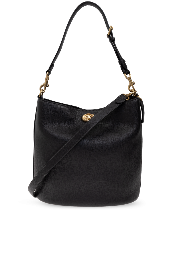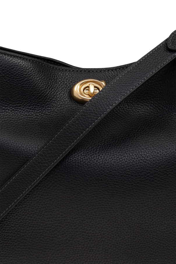 Indulge in the epitome of sophistication with the Willow B Shoulder Bag from the illustrious brand, Coach. Crafted from premium grain-textured leather in a classic black hue, this bag exudes timeless elegance. The rectangular silhouette, accented by gently rounded edges and a striking gold turn-lock closure, imbues it with a luxurious aura. Versatility is at the heart of this design, offering two strap options: a short strap for shoulder carry and a long, adjustable strap for crossbody wear, both secured with elegant gold metal clasps. The spacious interior, lined in rich brown fabric, features two compartments and a zip pocket, complemented by an additional snap pocket for optimal organization. Resting on metal feet to safeguard its pristine condition, the Willow B is the embodiment of functional elegance, effortlessly aligning with the opulence of exclusive fashion brands. Why Choose This Product? Premium grain-textured leather Luxurious gold turn-lock closure Versatile dual-strap options Spacious, organized interior Durable metal feet protection