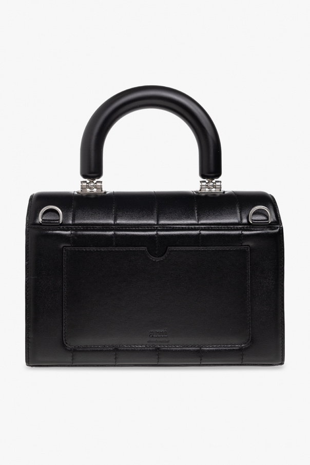 Black ‘Deja Vu Small’ quilted shoulder bag from Ami Alexandre Mattiussi. Made of leather, this model features a logo-engraved metal snap, back pocket, half-round handle, detachable and adjustable shoulder strap, silver-tone metal hardware and one internal compartment with two slip pockets.