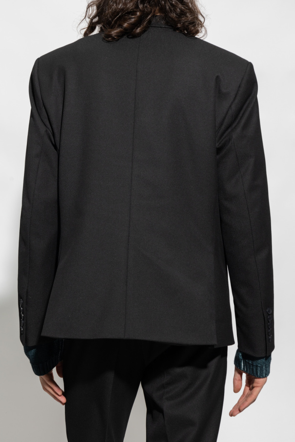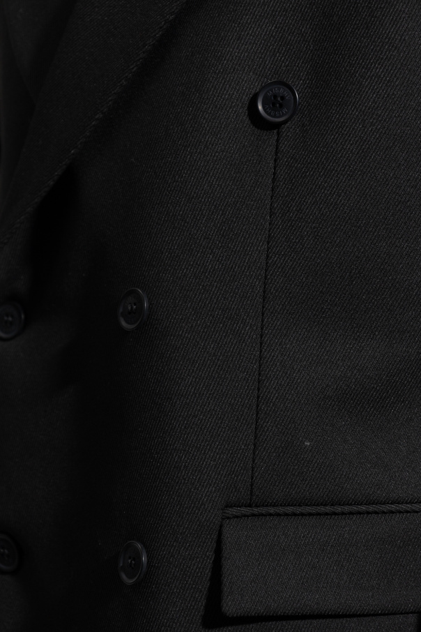 Black double-breasted blazer from MISBHV. Fastened with buttons, this design features peak lapels, two flap pockets, double rear vent and long sleeves with buttoned cuffs.