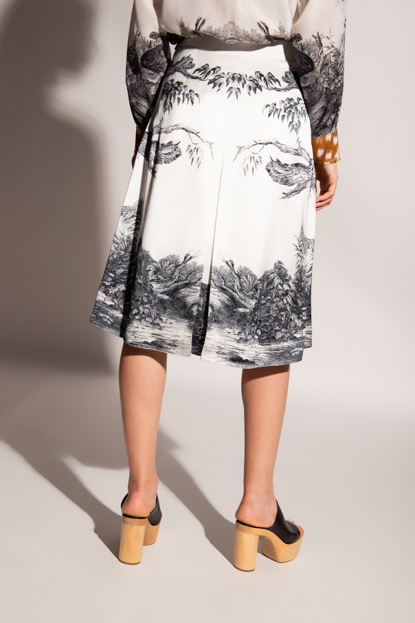 White skirt from Burberry. Emblazoned with a colourful graphic print with the brand\'s logo, this style features two-way zip closures on the sides.