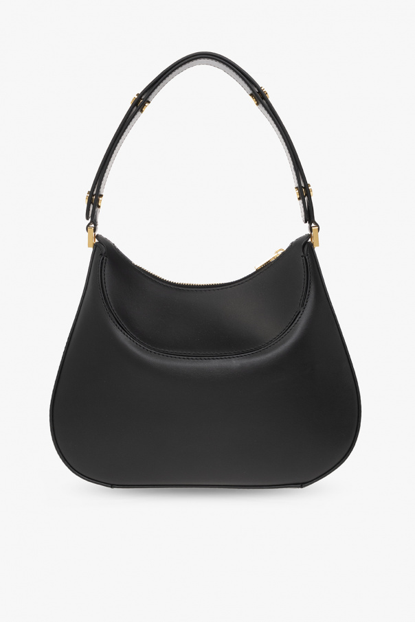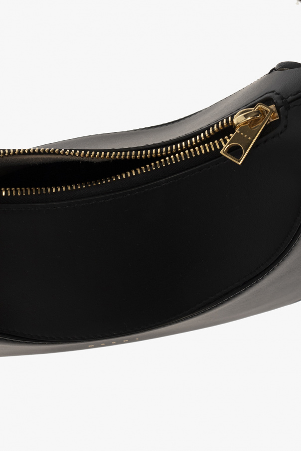 Black \'Milano\' shoulder bag from Marni. Crafted from calf leather, this design features a zip fastening, a logo print, a half-round handle, a detachable and adjustable shoulder strap, gold-tone metal hardware and one internal compartment.