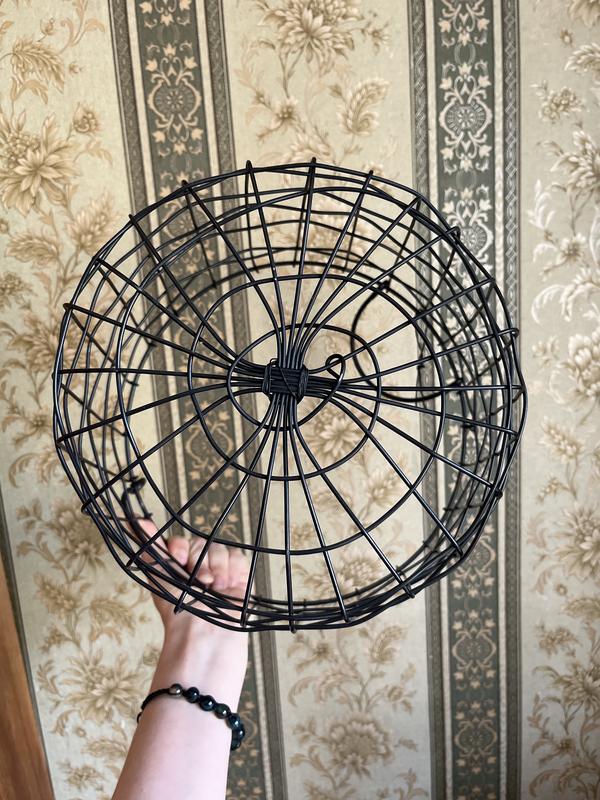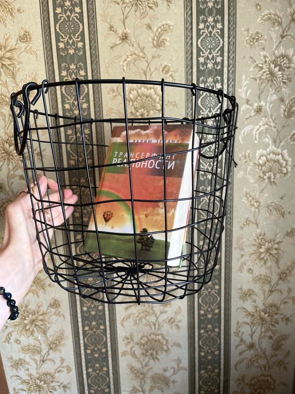 Плетенная корзина из металла, ее можно поставить в гостиной и хранить там пледы, пульты для техники, книги или газеты.