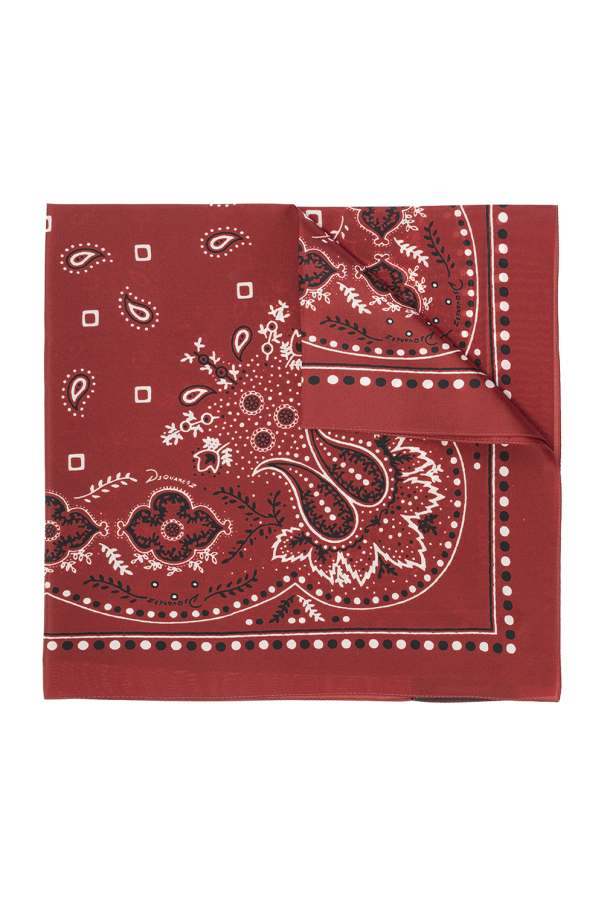 Maroon scarf from Dsquared2. Made of silk, this design is enriched by a paisley motif in white and black.