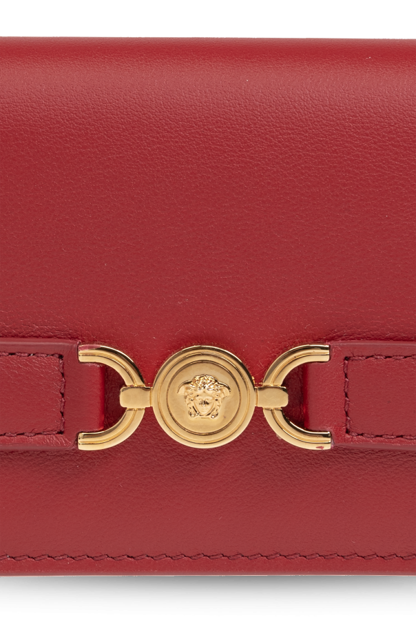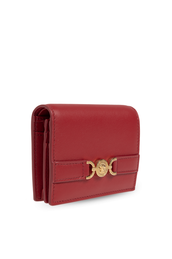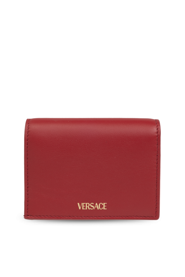 Introducing the Versace Logo Wallet, a quintessential piece from our exclusive collection. Crafted with precision, this rectangular wallet exudes a timeless elegance with its sleek and refined design. Constructed from the finest quality leather, the exterior showcases a striking red hue, making a bold yet sophisticated statement. The smooth, unembellished surface accentuates its minimalist aesthetic, while the secure snap closure ensures the safety of your valuables. Adorning the front is a golden element featuring the iconic Medusa head, a symbol synonymous with Versace\'s opulence. The back is embellished with a golden Versace logo, affirming its authenticity and prestige. Open the wallet to reveal an equally luxurious red leather interior, meticulously designed for functionality. It boasts compartments for bills, six card slots, and a zippered coin pocket, harmonizing practicality with style. The golden snap fasteners complement the other golden accents, creating a cohesive and elegant ensemble. Why Choose This Product? High-quality leather construction for a luxurious feel. Striking red color for a bold fashion statement. Iconic Medusa head and Versace logo for authenticity. Practical interior layout with multiple compartments. Elegant and secure snap closure with golden accents.
