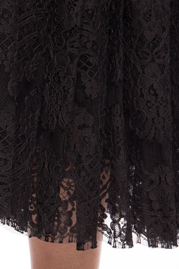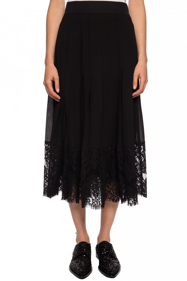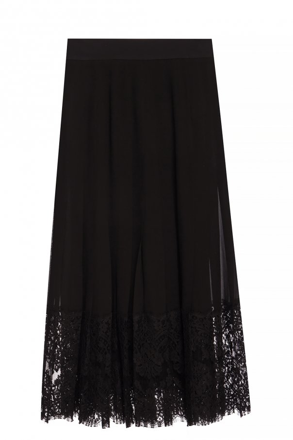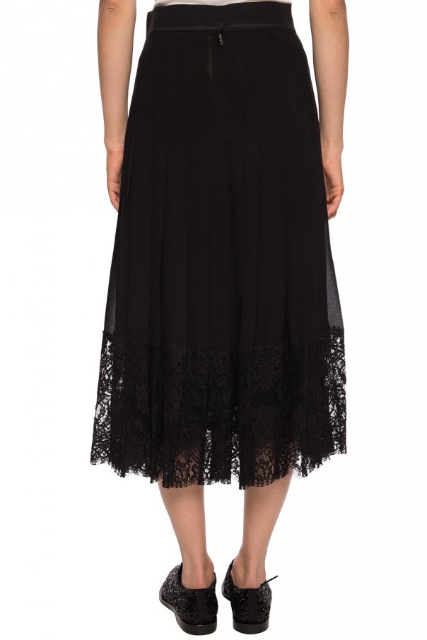 Black pleated skirt from Dolce & Gabbana. Trimmed with silk and lace. Zip, button and snap fastening.
