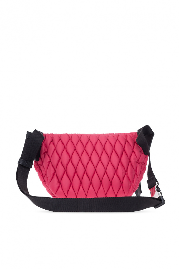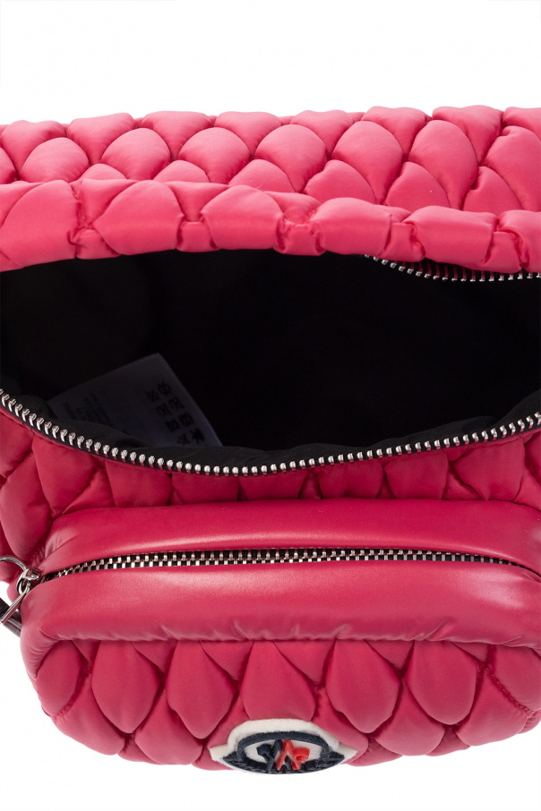 Pink and black ‘Felicie’ quilted belt bag from Moncler. Trimmed with leather, this model features a zip fastening, logo patch, zip pocket, adjustable belt, one internal compartment and silver-tone metal hardware.