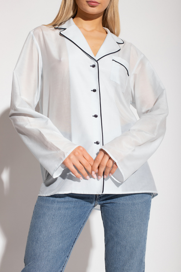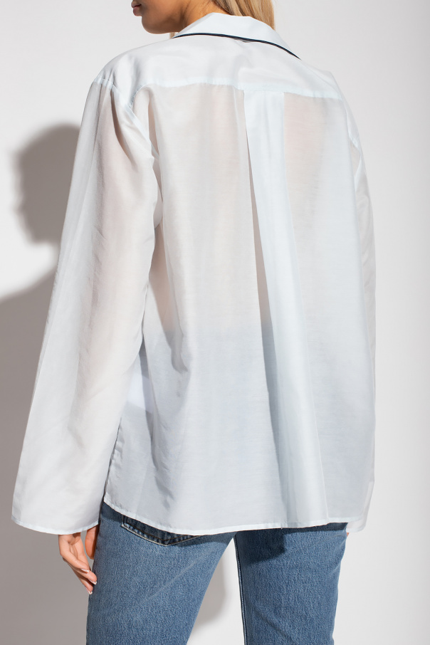 Light blue loose-fitting shirt from Toteme. Made of an organic cotton and silk blend, this long sleeve design features button fastenings, navy trimming and front pocket.