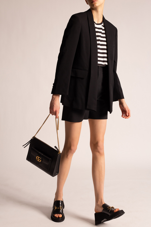 Black high-waisted shorts from Junya Watanabe Comme des Garçons. Made of a wool blend, this pair features a zip fly with a snap, two side seam pockets and two back button pockets with flaps.