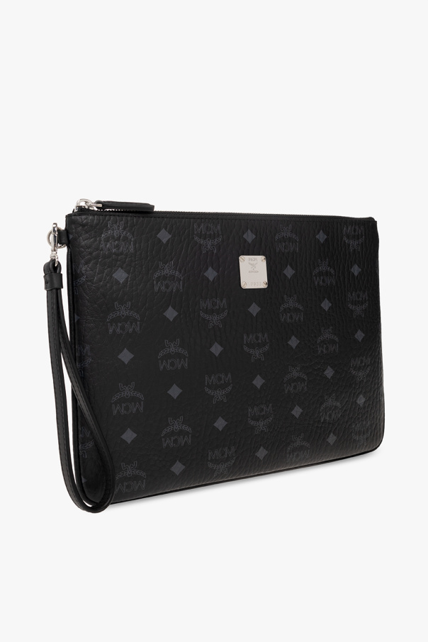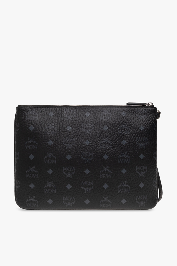 Black and grey ‘Aren’ handbag from MCM. Crafted from the brand’s signature Visetos canvas with leather trims, this model fastens with a zip and is decorated with a logo-engraved metal detail. It is complete with a detachable wrist strap, silver-tone metal hardware and one internal compartment with three slip pockets and one zip pocket.