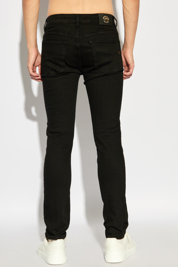 Introducing the epitome of sophisticated style and unparalleled quality: the Versace Jeans Couture Straight-Leg Jeans. Crafted from a dense, high-quality blend of cotton and elastane, these jeans offer both comfort and durability, ensuring they remain a staple in your wardrobe for years to come. The luxurious black denim serves as a canvas for the distinctive Versace Jeans Couture logo, elegantly displayed on a leather patch at the back, signifying this piece as part of a limited collection. These jeans are meticulously designed with a classic straight-leg cut, ensuring a flattering fit that complements any silhouette. The striking contrast of the golden buttons against the black fabric not only adds a touch of elegance but also highlights the meticulous attention to detail, characteristic of the Versace brand. With a convenient zipper and button closure and equipped with five practical pockets, these jeans blend functionality with high fashion. Why Purchase This Product? Exclusive Design: Featuring the iconic Versace Jeans Couture black and white logo, offering a unique and collectible piece. Premium Materials: Made with 98% cotton and 2% elastane, providing both comfort and durability. Elegant Details: Accented with gold-toned buttons and distinctive stitching, adding sophistication to your attire. Versatile Style: The timeless straight-leg cut ensures these jeans can be effortlessly paired with any ensemble.