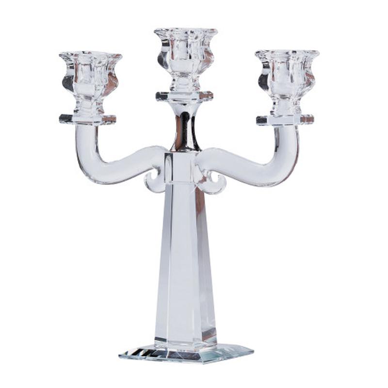 Этот изящный канделябр, изготовленный из прозрачного стекла, станет прекрасным