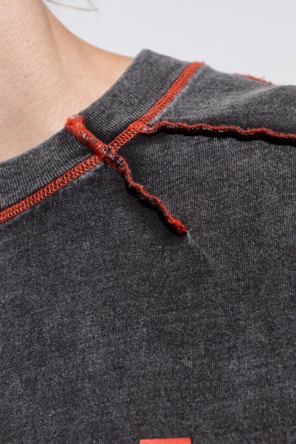 Dark grey ‘T-WEEK-LS’ crewneck T-shirt from Diesel. Crafted from washed cotton, this style showcases the brand's logo printed on the front, contrast red stitching and long sleeves.
