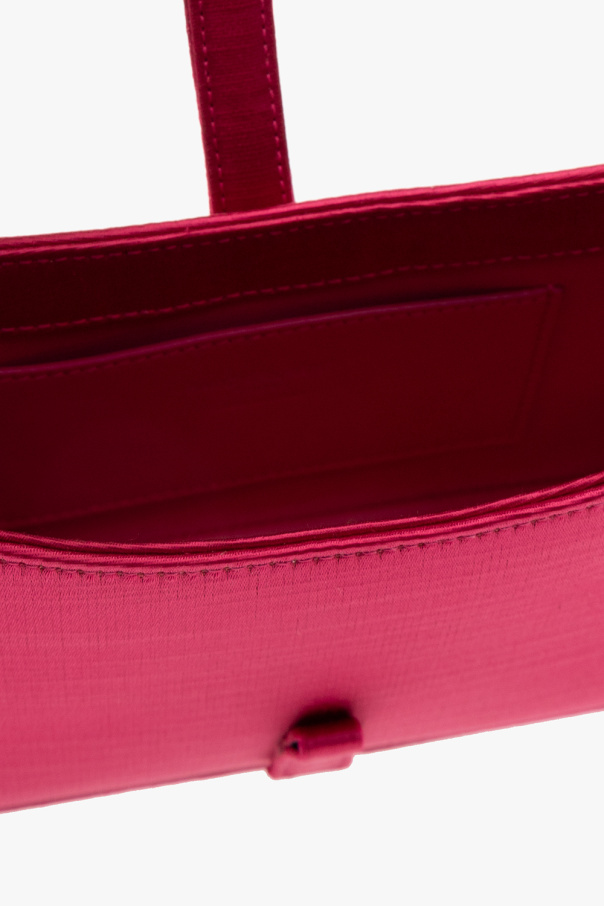 Dark pink ‘Le 5 A 7 Mini’ handbag from Saint Laurent. Crafted from fabric, this design fastens with a logo-shaped hook in gold-tone and features a short half-round strap, gold-tone metal hardware and one internal compartment with a card slot.