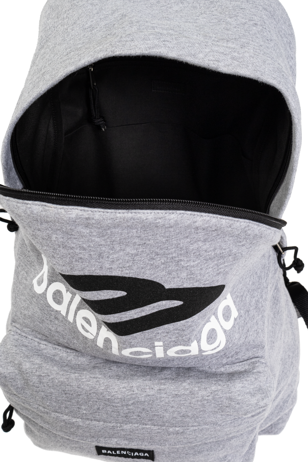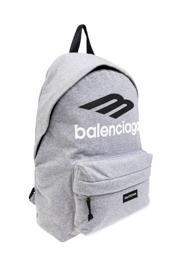Introducing the Explorer Backpack from the esteemed house of Balenciaga. This exquisite piece seamlessly blends sophistication with utility, making it an impeccable choice for the discerning individual. The Explorer Backpack showcases a classic, rectangular silhouette with gracefully rounded upper edges, enveloped in a smooth, uniform gray hue. Crafted from a premium blend of cotton and polyamide, this backpack exudes a soft yet durable texture, ensuring long-lasting elegance. Adorned with a prominent white Balenciaga logo accentuated by a black graphic detail on the front, this backpack is a statement of luxury. The front pocket, secured with a sturdy zipper and embellished with a \"BALENCIAGA\" label, offers additional storage and style. Equipped with two wide, adjustable black straps, the Explorer Backpack ensures comfort and ease of wear. The main compartment, closed with a robust zipper, reveals a spacious interior lined with dark fabric, featuring a slip pocket and a zippered pocket for organized storage. Why Choose This Product? Exquisite Design: Classic shape with modern detailing. Premium Materials: High-quality cotton and polyamide blend. Iconic Branding: Prominent Balenciaga logo. Functional: Spacious interior with multiple pockets. Comfortable: Wide, adjustable straps for easy wear.