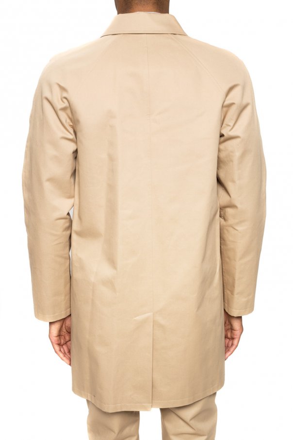 Beige trench coat with a single vent from A.P.C. Made of cotton. Fastened with buttons with a concealed placket. Two pockets on the front. Long sleeves.