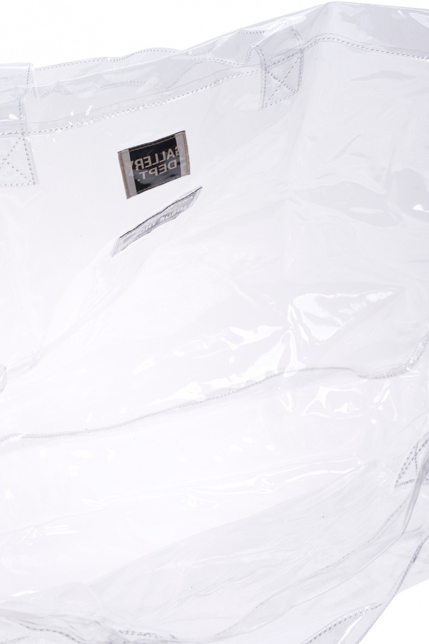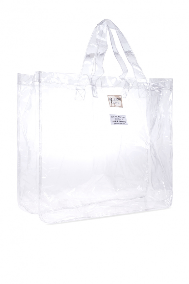 Transparent shopper bag from GALLERY DEPT. Made of recycled materials, this model features beige and white logo patches, two half-round handles and one internal compartment.