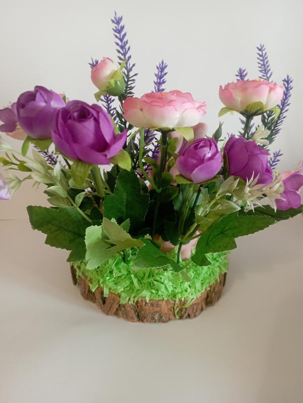 Висота 21 см, основа дерев'яний зріз, в діаметрі 15 см.Стан: НовийКолір:- Різнокольоровий