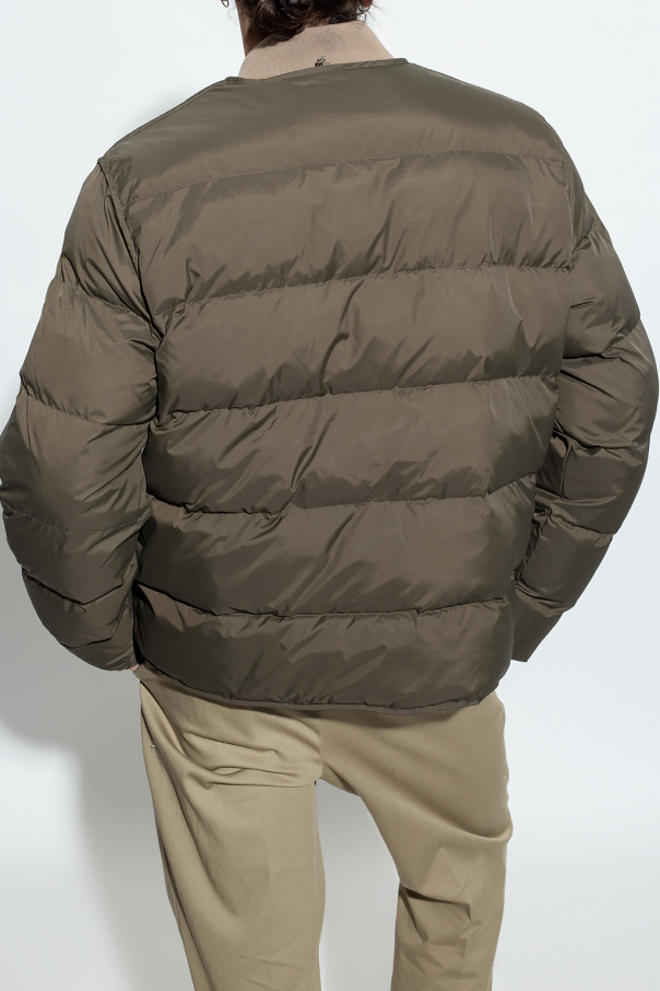 Khaki ‘Noor’ insulated two-layered jacket from AllSaints. Fastened with a two-way zip, this garment features two front slip pockets and beige lining.