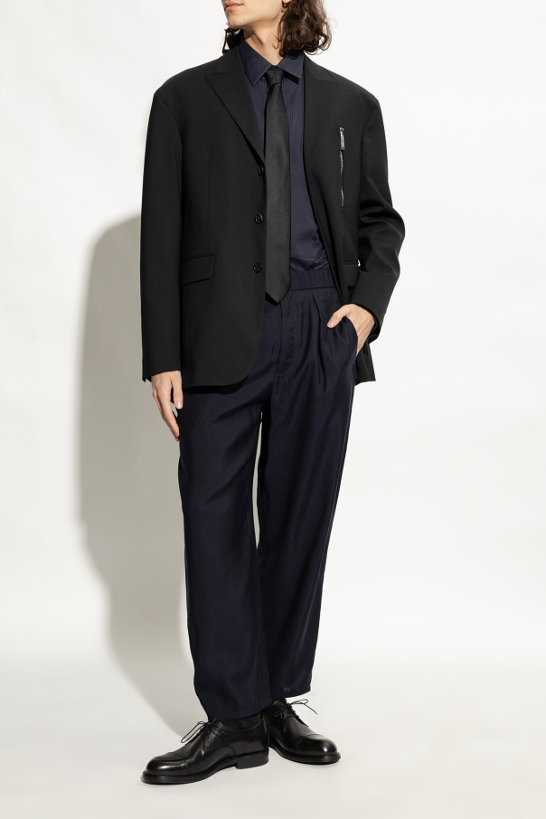 Black ‘Ray’ Derby shoes from Jimmy Choo. Crafted from calf leather, this lace-up model sits on a black rubber sole and showcases decorative stitching details and logo-engraved hardware on the heel.