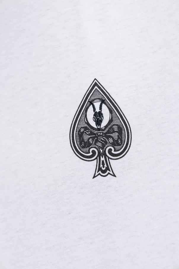 White ‘Ace’ crewneck T-shirt from AllSaints. Crafted from organic cotton, this style features short sleeves, an elasticated collar and a black graphic print accompanied by logo embroidery on the front.