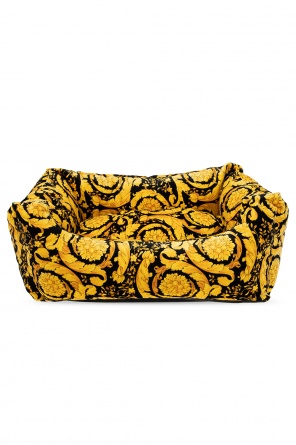 Black pet collar from Versace Home. Crafted from calf leather, this item features an adjustable metal buckle and the iconic Medusa head applique in gold-tone metal.