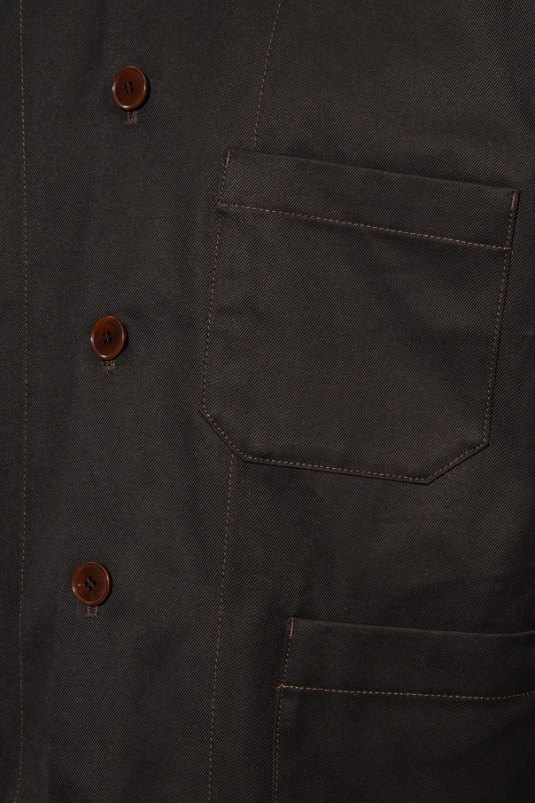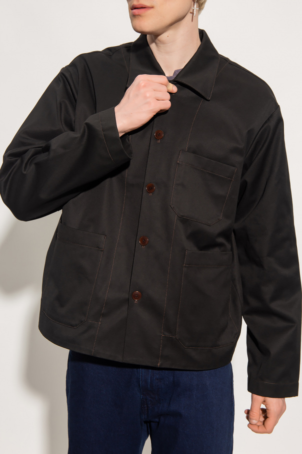 Black jacket from Acne Studios. Made of cotton, this style features button fastenings, three slip pockets and long sleeves.