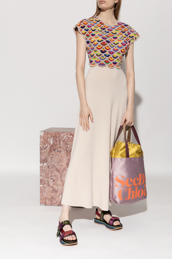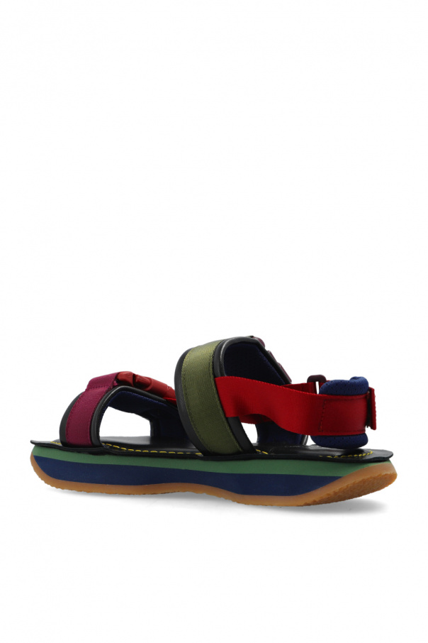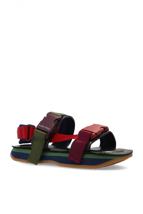 Multicolored sandals from See By Chloé. Made of leather, this pair features an adjustable strap with velcro closure, decorative logo-printed snaps and rubber sole in beige, navy and green.