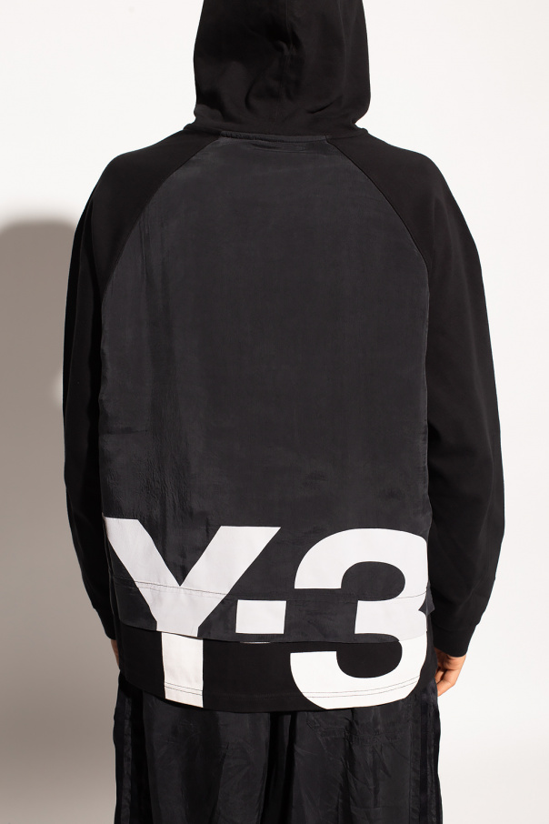 Black, grey and white hooded sweatshirt from Y-3 Yohji Yamamoto. Crafted from cotton jersey, this hoodie showcases a graphic print with the brand\'s logo and long sleeves with elasticated cuffs.