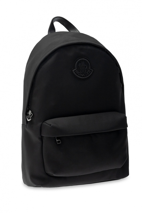 Black ‘Pierrick’ backpack from Moncler. Fastened via two-way zip closure, this item features an external zip pocket accompanied by a logo patch on the front, a half-round top handle, adjustable shoulder straps and interior with one compartment, one snap-fastened pocket and one zip pocket.