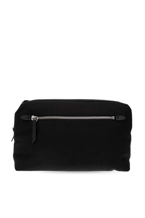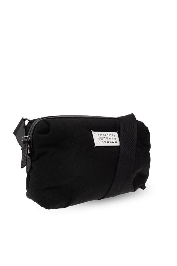 Black shoulder bag from Maison Margiela. Crafted from fabric, this design secures with a zip and showcases the brand's signature white logo patch on the front. It is complete with an adjustable shoulder strap, one back zip pocket, silver-tone metal hardware and one internal compartment with a zip pocket.