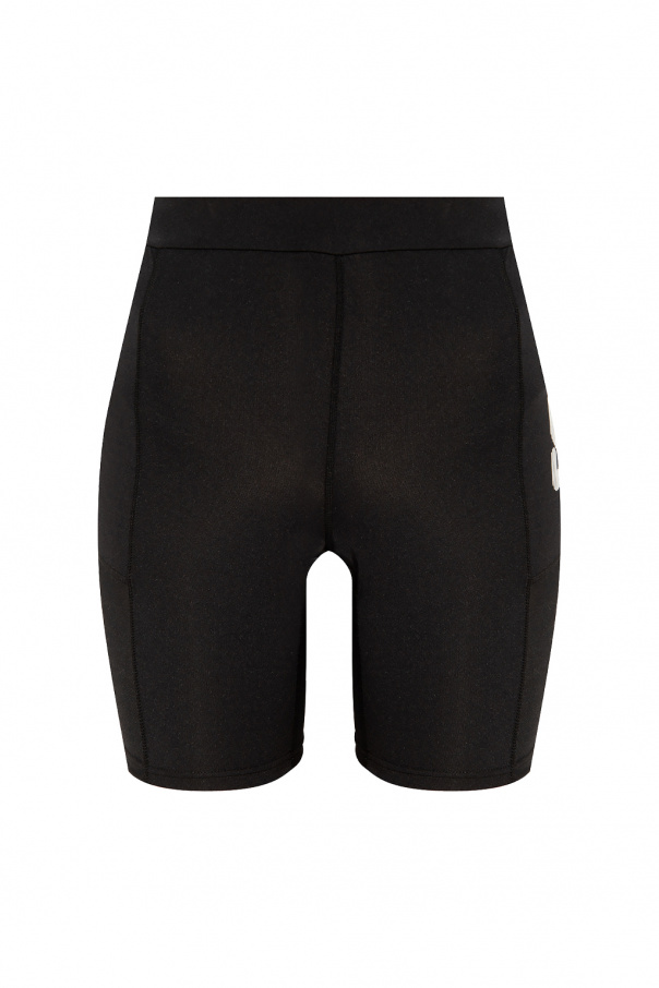 Black short leggings from Fila. This design is complete with an elastic waistand, transparent inserts and a white logo print.