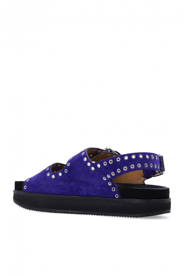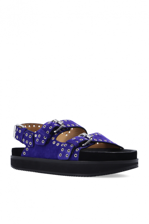 Purple ‘Ophie’ platform sandals from Isabel Marant. Made of calf suede, this model features adjustable buckle straps, silver-tone metal hardware and a black sole in leather and rubber.