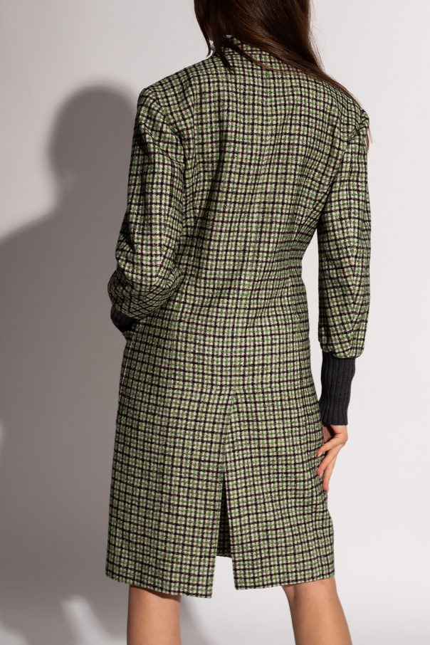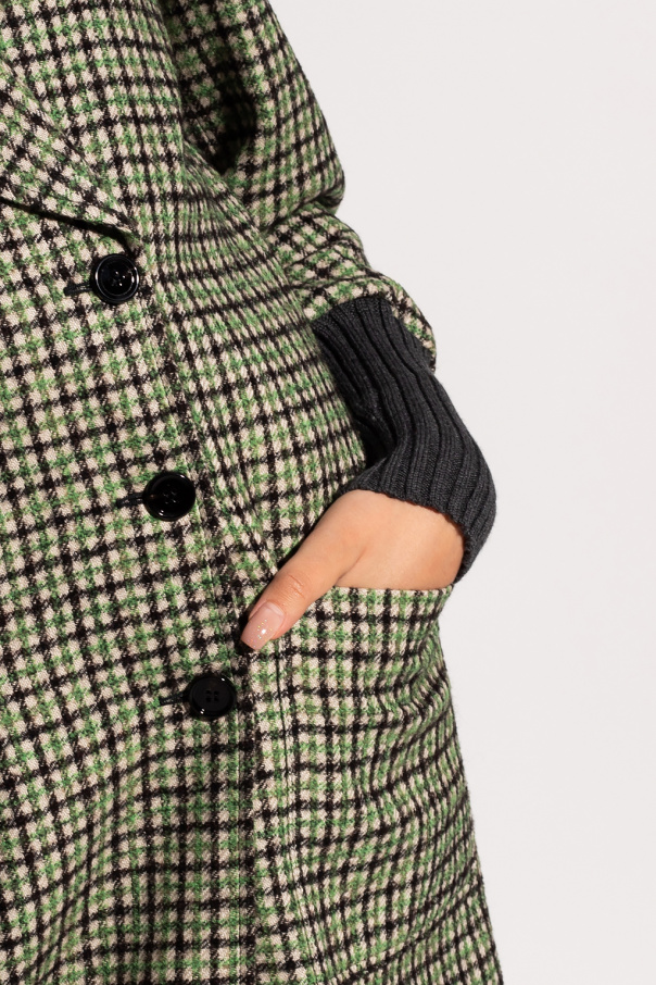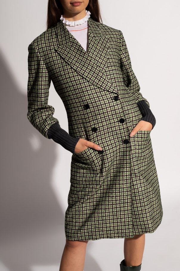 Green, black and cream double-breasted coat with peak lapels from Chloé. Fastened with buttons, this design features a check pattern, two front pockets, single rear vent and long sleeves with ribbed cuffs in grey.
