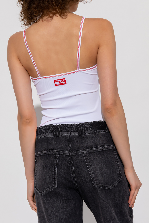White ‘UFTK-HILDAS’ tank top from Diesel. Crafted from stretchy fabric with a ribbed knit, this style features a form-fitting silhouette and contrasting red stitching details.