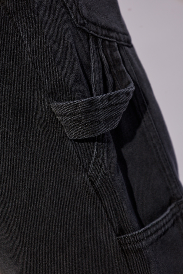 Black ‘Bymara’ jeans from Isabel Marant. Falling with relaxed-fitting, straight legs, this pair features a zip fly with a button, multiple pockets and a brown logo patch accompanied by a decorative loop on the back.