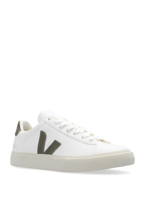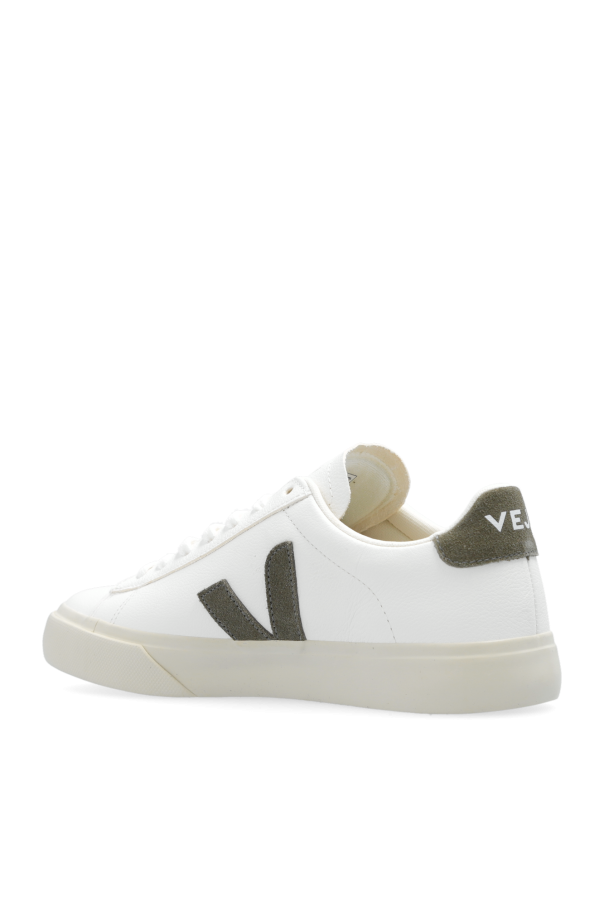 White and khaki ‘Campo Chromefree Leather’ sneakers from Veja. This pair features organic cotton shoelaces, a V patch on the side, logo on the tongue and back, and recycled fabric lining. The insole is made from Amazonian rubber, sugar cane, recycled EVA and organic cotton. The cream sole is crafted from Amazonian rubber, silica mineral, recycled rubber, synthetic rubber and other materials. Crafted from soft and lightweight chrome-free bovine leather that comes from farms located in the south of Brazil (Rio Grande do Sul), it undergoes an innovative innovative tanning process where no chrome, heavy metals or dangerous acids are involved. By simplifying the tanning process, the use of chemicals and energy is limited, the use of water is reduced by about 40% and the use of salt by 80%. After tanning, the water is recyclable.