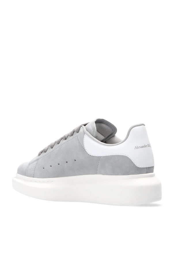 Grey sneakers from Alexander McQueen. Crafted from leather, this lace-up pair features a logo print and white rubber sole.