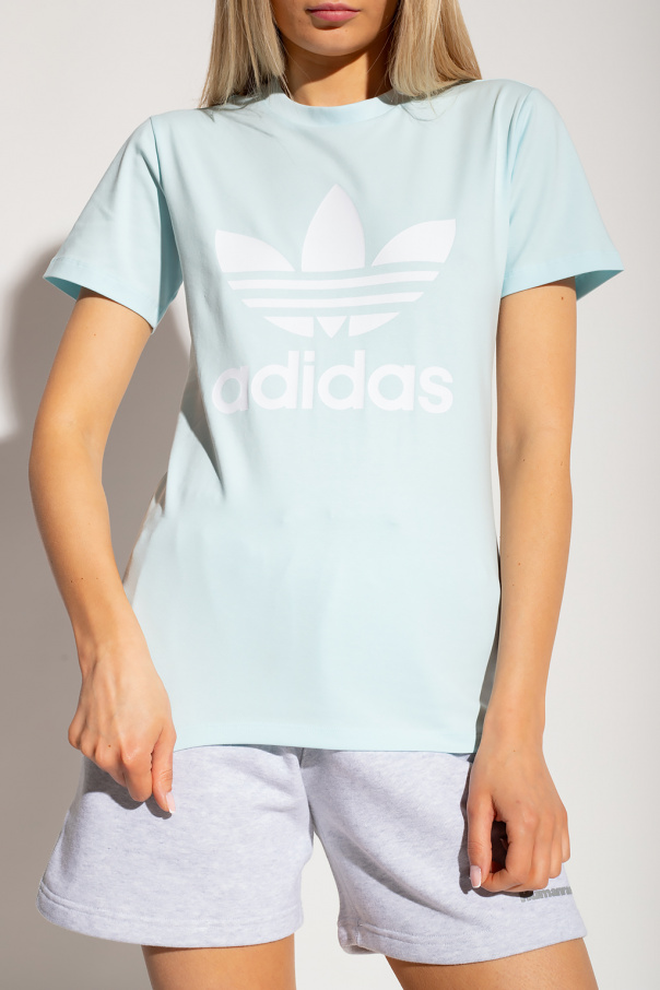 Light blue crewneck T-shirt from ADIDAS Originals, the ‘End Plastic Waste’ line. Crafted from BCI certified cotton, this style features short sleeves, an elasticated collar and a white Trefoil logo printed on the front.