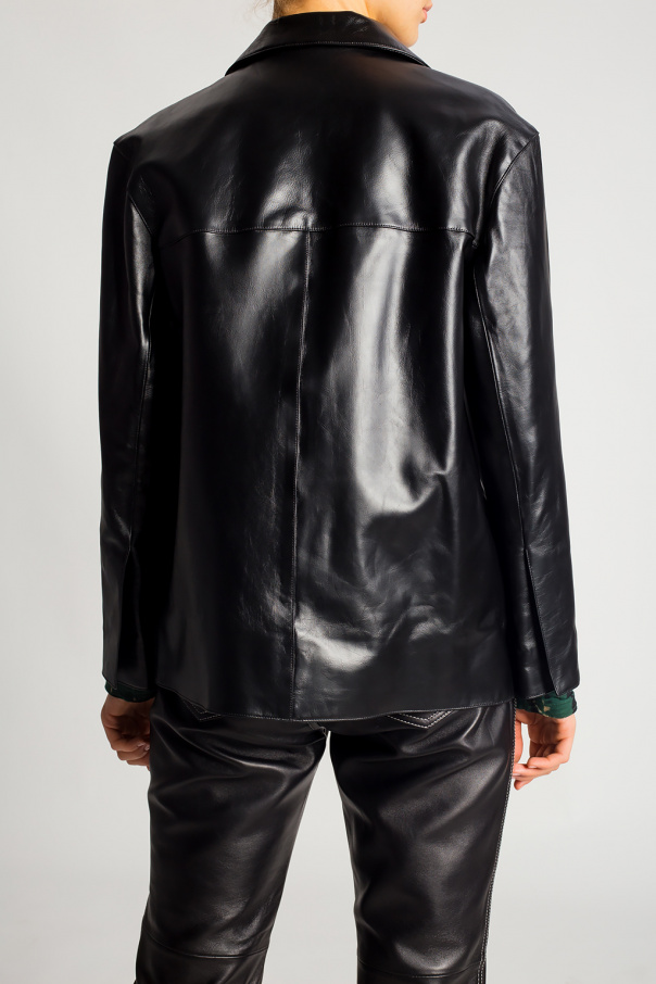 Black jacket from Proenza Schouler. Crafted from calf leather, this style features button fastenings with a concealed placket, four frontal pockets and long sleeves with slits.