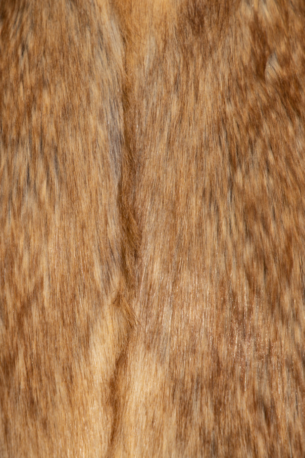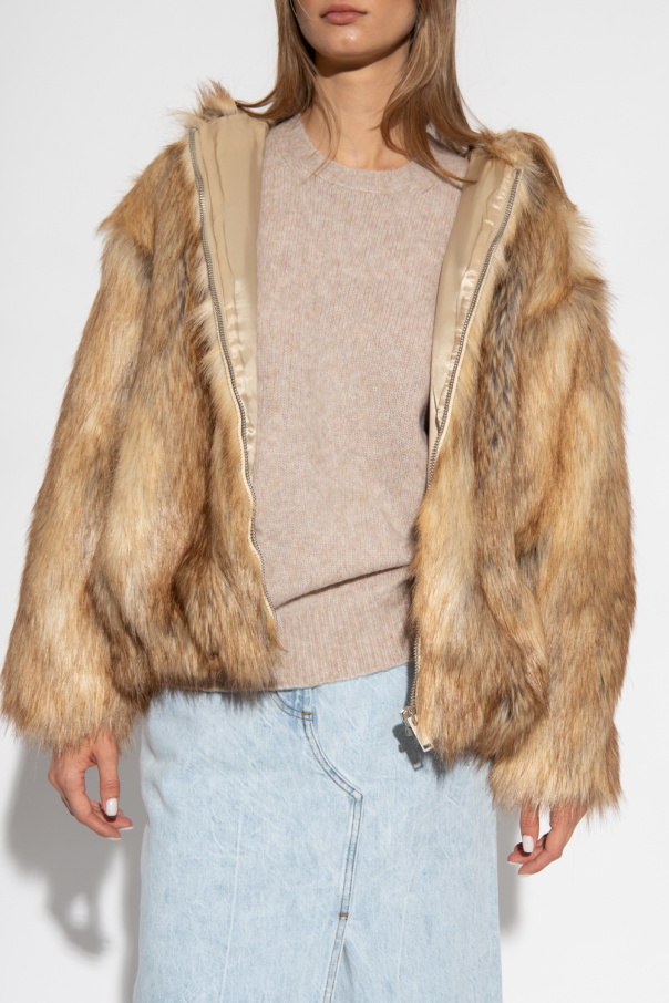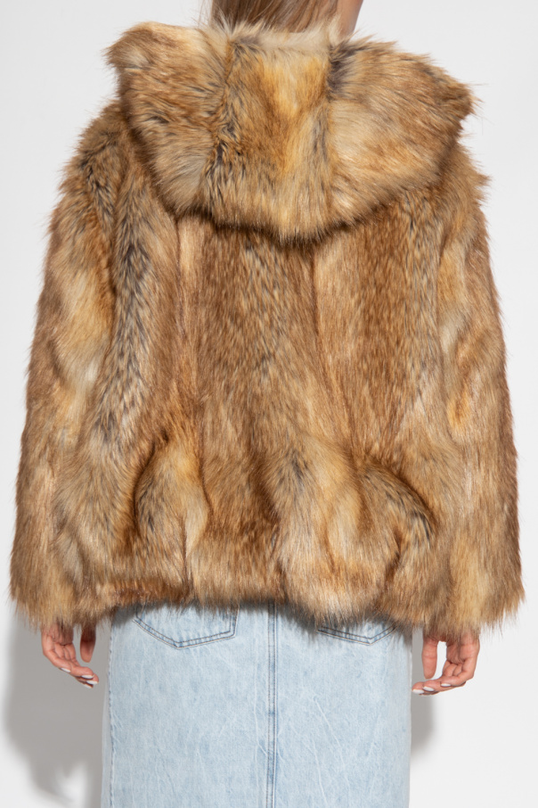 Beige and brown loose-fitting hooded jacket from Halfboy. Crafted from faux fur, this long sleeve design features a zip fastening and two front pockets.