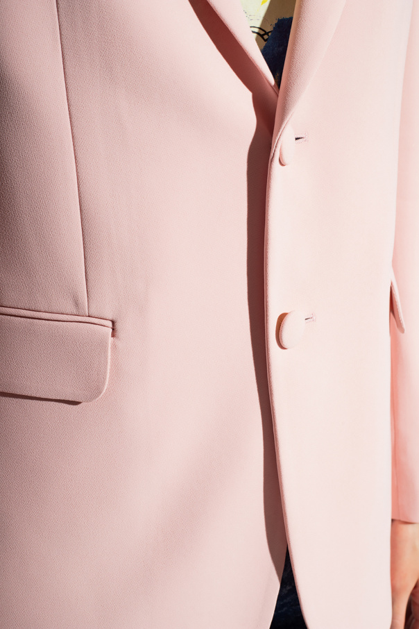 Pink blazer from Red Valentino. Fastened with buttons, this style features notch lapels, long sleeves, a single back vent, two flapped pockets and one welt pocket.