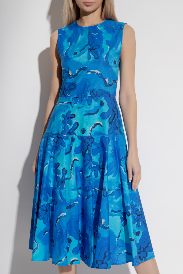 Blue sleeveless dress from Marni. Crafted from cotton, this style showcases a floral graphic artwork by artist Flaminia Veronesi. It is complete with a round neck, a flared hem and a hidden back zipper with a hook & eye closure.