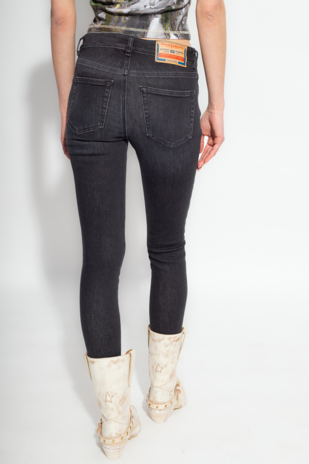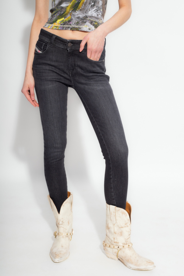 Black ‘2017 SLANDY L.27’ jeans from Diesel. Made of cotton, this tapered leg pair features a zip and button closure and five slip pockets.