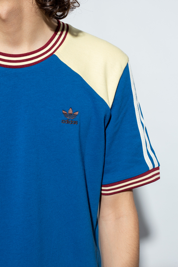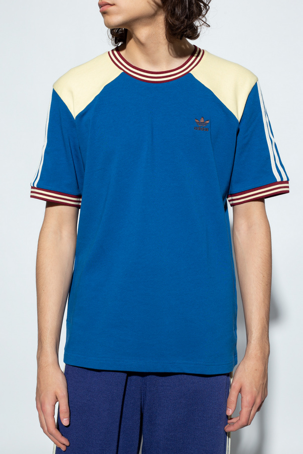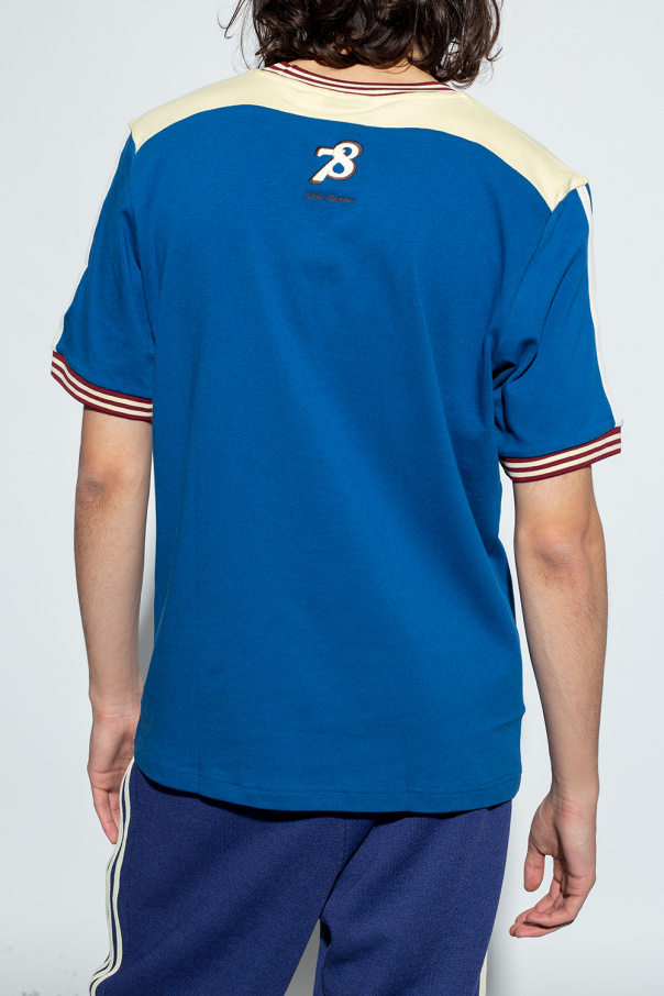 Blue and cream crewneck T-shirt from ADIDAS Originals x Wales Bonner. Made of cotton, this garment features a zip fastening, logo embroidery and the label’s signature openwork three stripes. This timeless collection is inspired by the ‘80s, collegiate leisurewear and independent thinking.