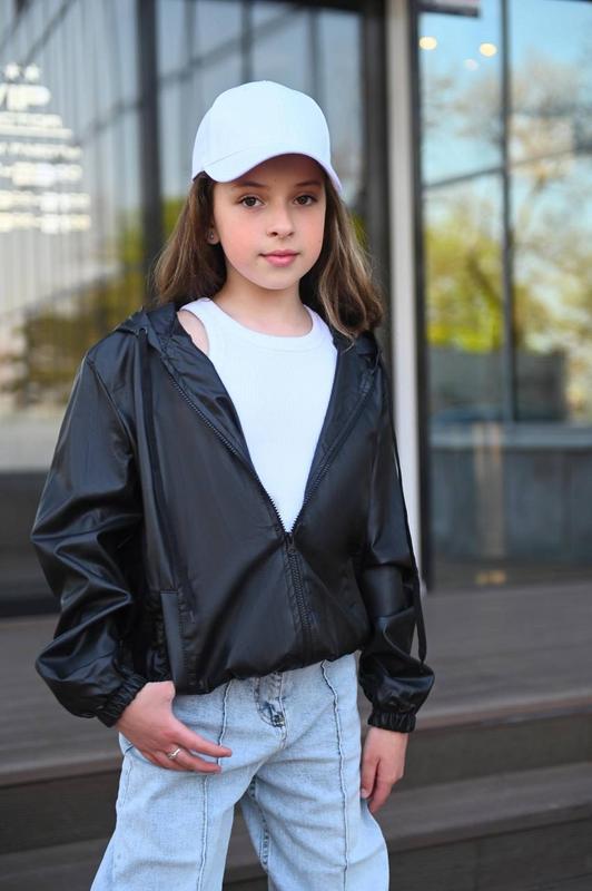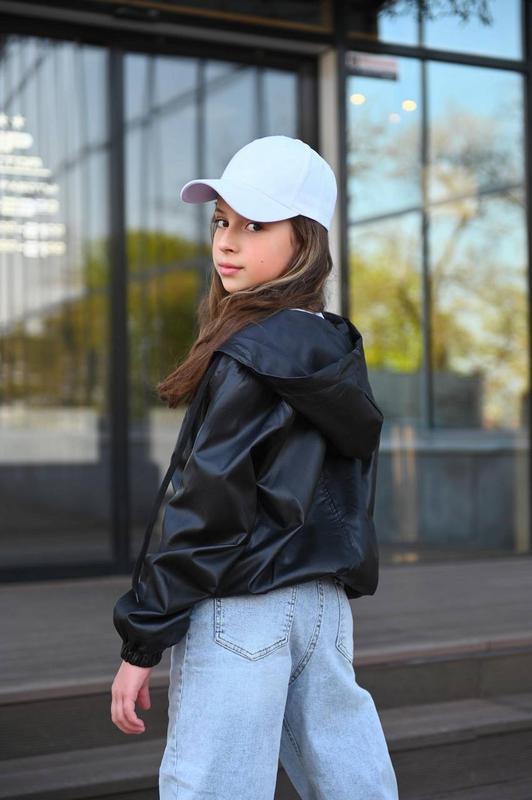 Подростковый кожаный бомбер для девочки подростка черный из экокожи на подкладке куртка ветровка бомберка эко кожа