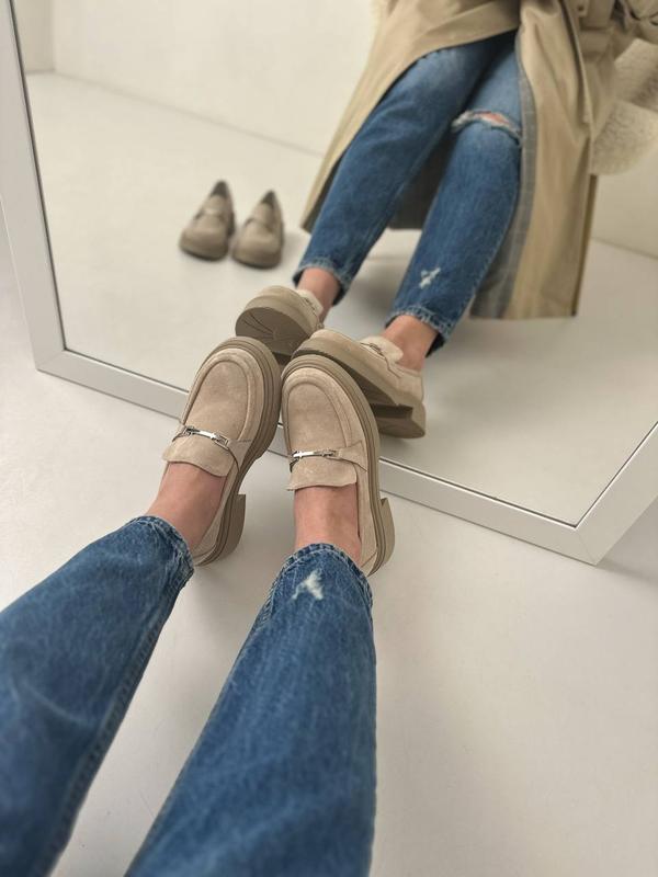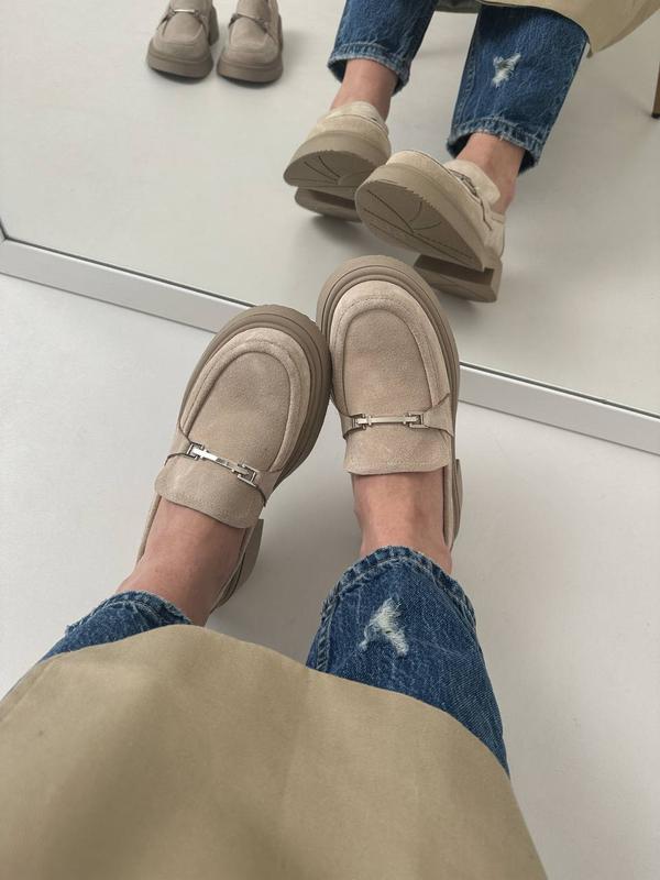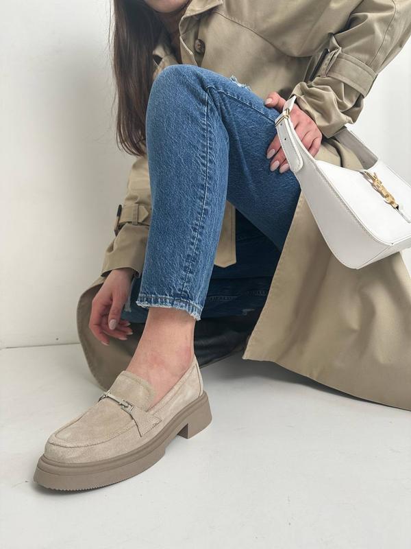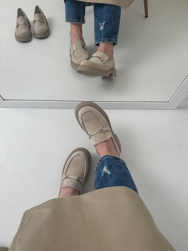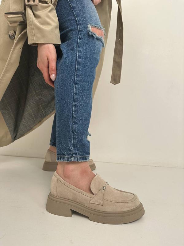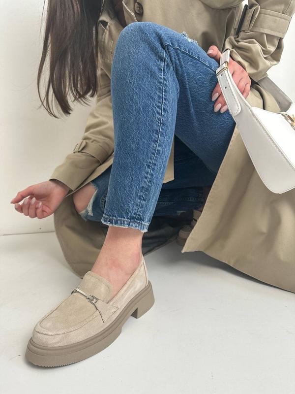 Стильные лоферы,туфли бежевые замшевые женские деми, демисезонные осенние, веснние, летние (на осень,весная,лето 2023-2024)