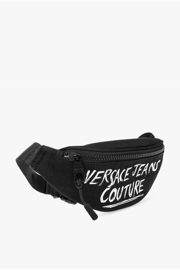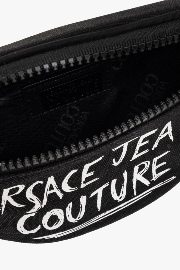 Black belt bag from Versace Jeans Couture. Printed with the brand\'s logo, this design features a zip fastening, a rubber application, an adjustable strap with a buckle and one internal compartment.