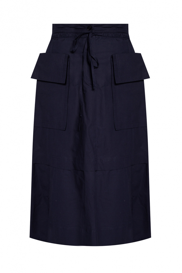 Navy blue skirt from See By Chloé. Crafted from cotton, this item secures with a zip, a button and a self-tie fastening, and showcases two frontal slip pockets and gathered details.